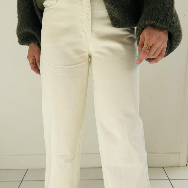 Conseil mode : Ce jean peut s’associer avec tous nos pulls et nos chemisiers grâce à son coloris écru, élégant et facile à assortir.