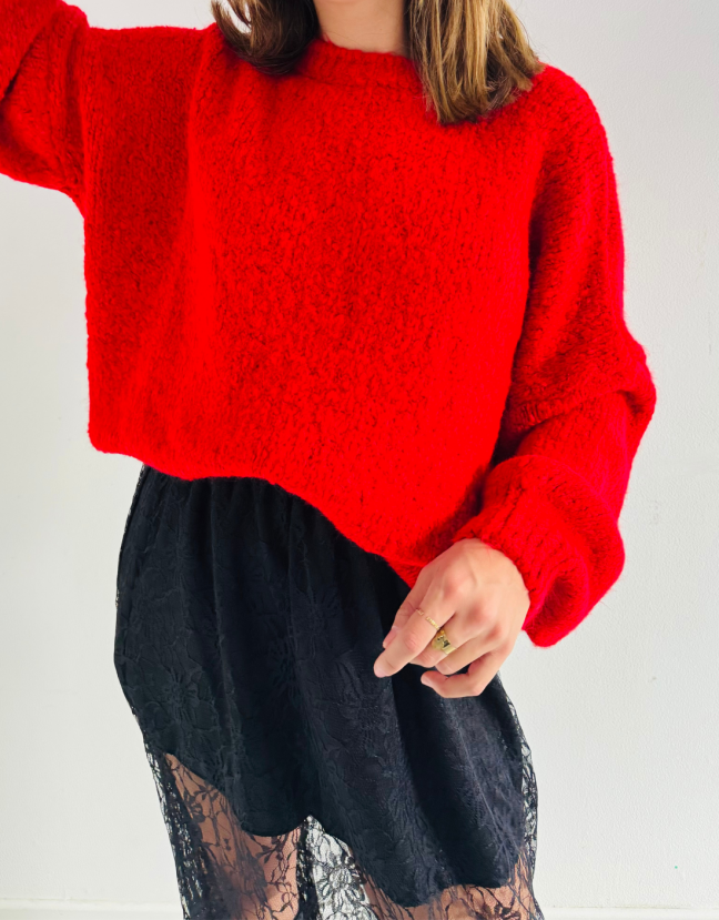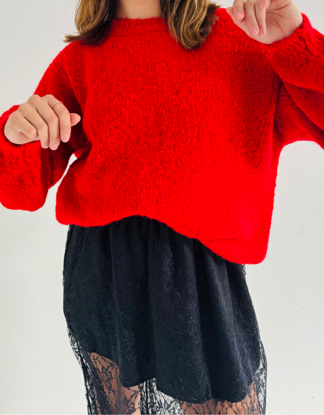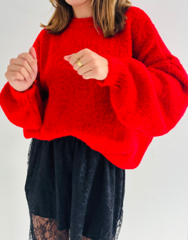 Illuminez votre garde-robe avec ce pull rouge en maille uni, une pièce à la fois confortable et audacieuse.