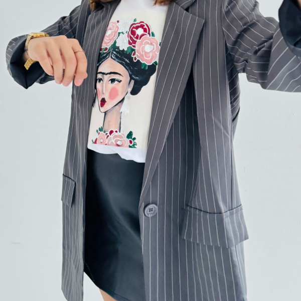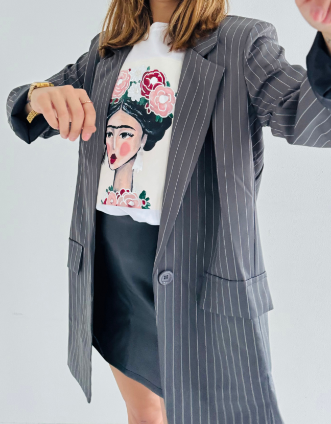 Adoptez un style tendance avec cette veste oversize à rayures, idéale pour sublimer vos tenues avec une touche moderne et sophistiquée.